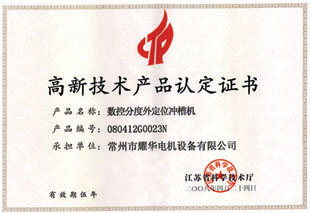 高新技术产品认定证书